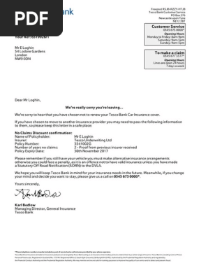 Tesco Bank No Claim Discount 28 11 17 Pdf Vehicle Insurance Insurance